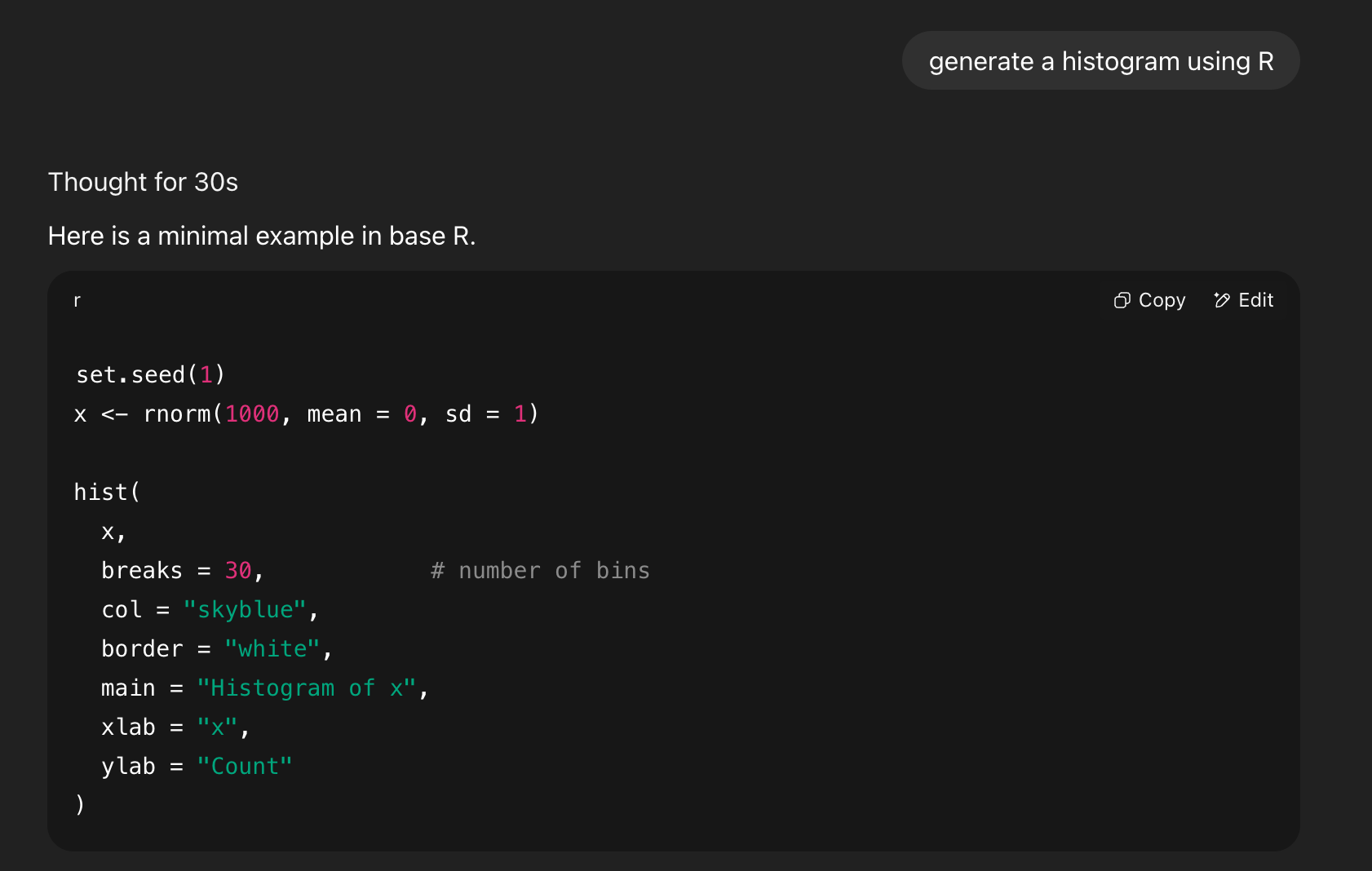 - I reviewed the suggestions, but I did not use the exact code. Instead, I change the code format and breaks value to 50.