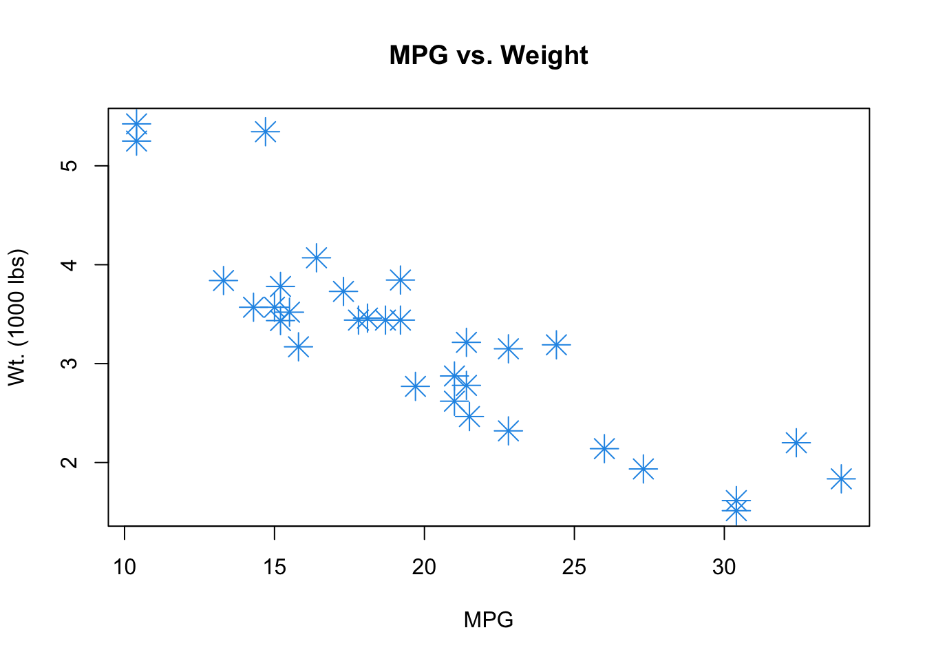 xlab = "MPG", ylab = "Wt. (1000 lbs)",