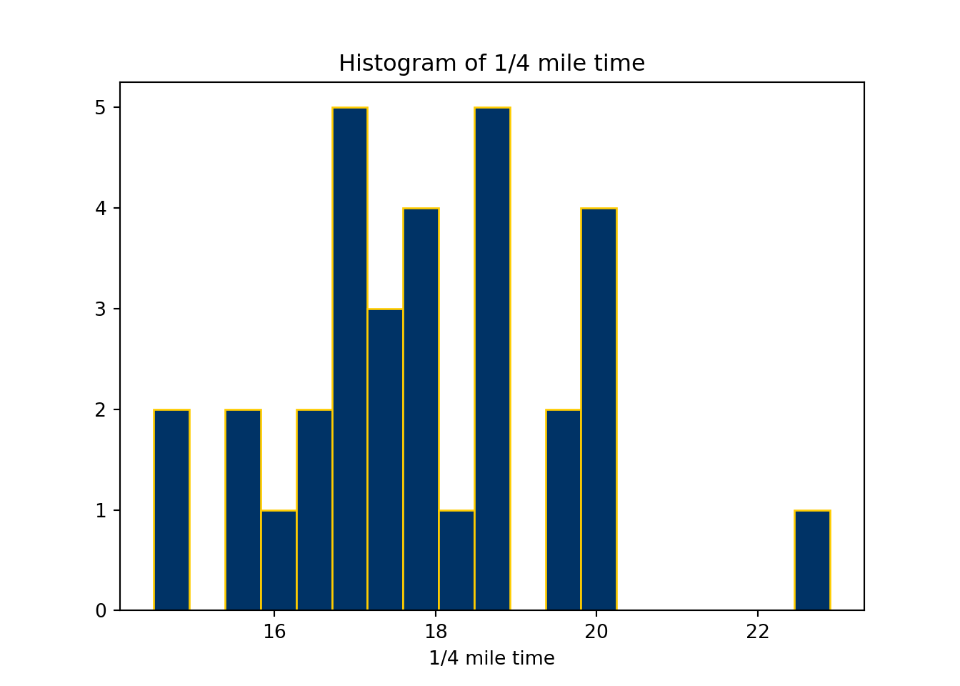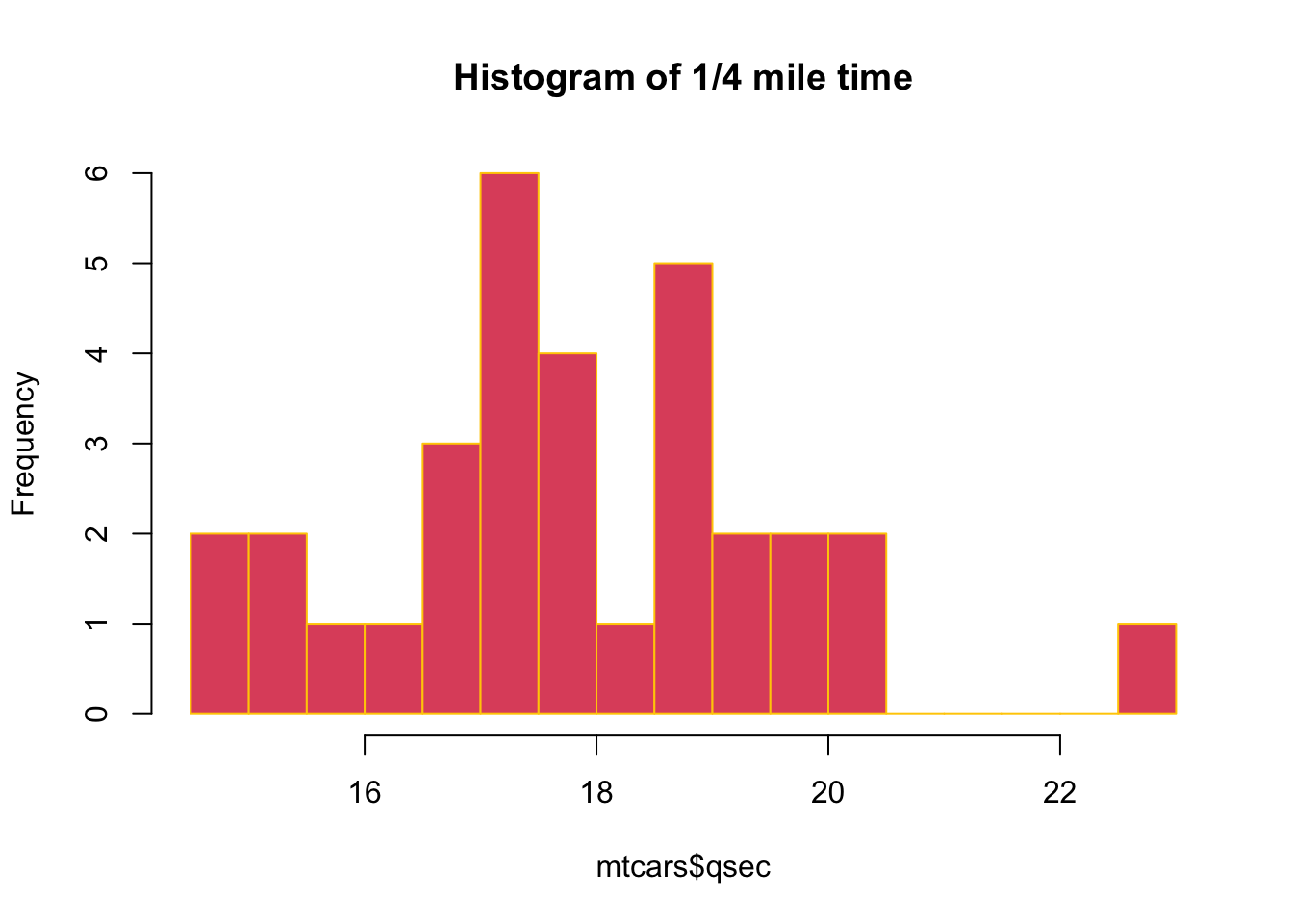 hist(mtcars$qsec, breaks = 20, border = "#FFCC00",