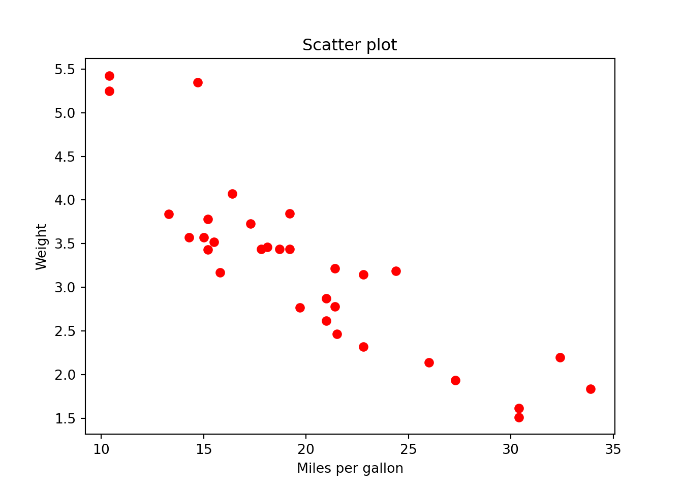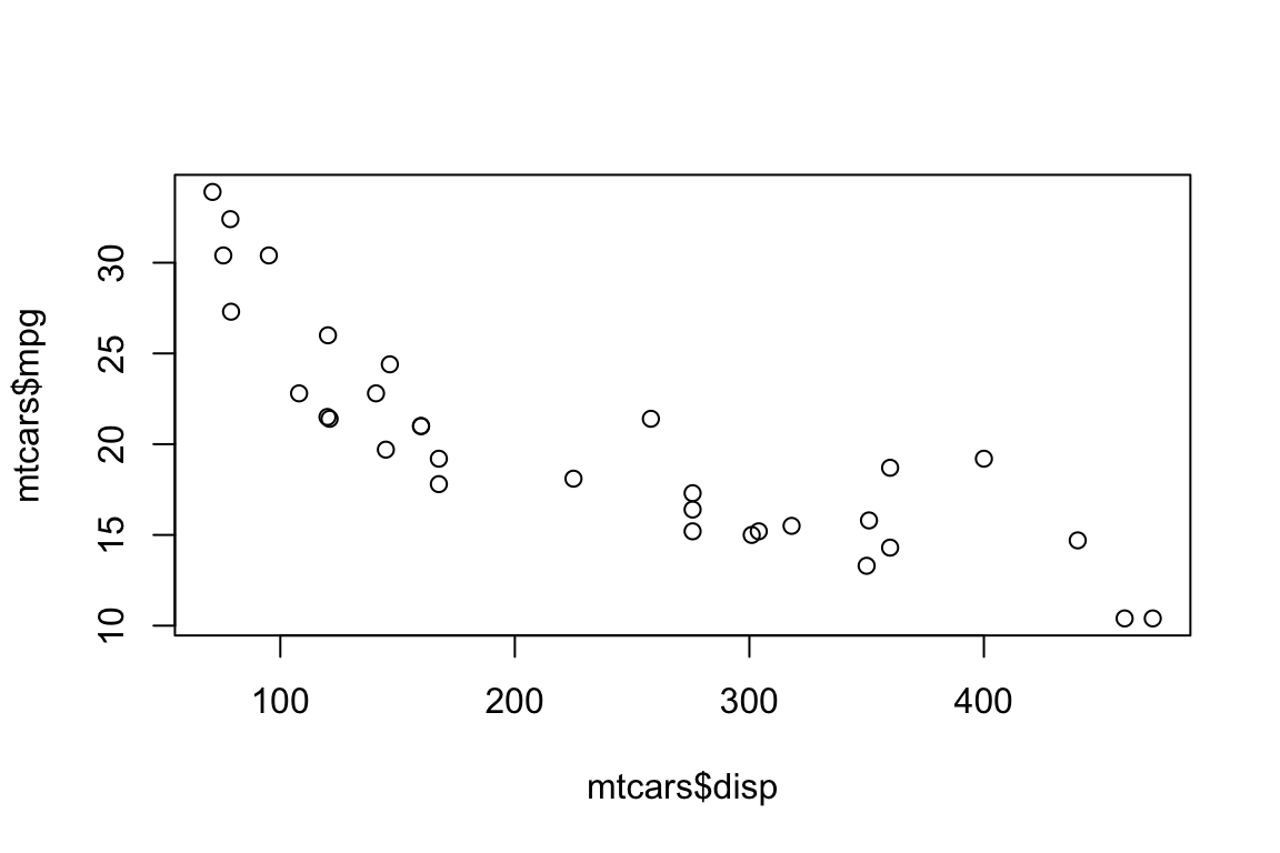 plot(x = mtcars$disp, y = mtcars$mpg)