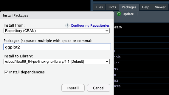geom_point()ggplot2:: followed by the name of the function or data.ggplot2::ggplot(ggplot2::mpg,