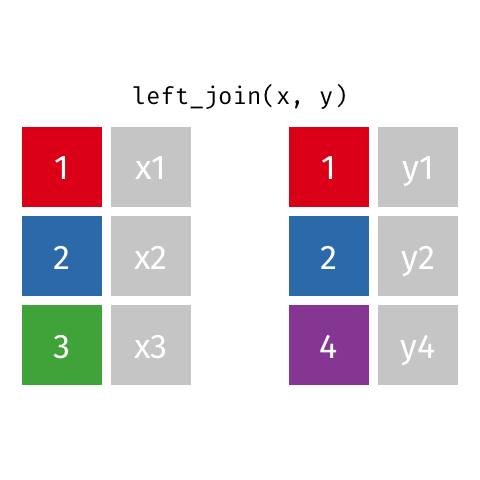 left_join(x, y, by = "id")# A tibble: 3 × 3